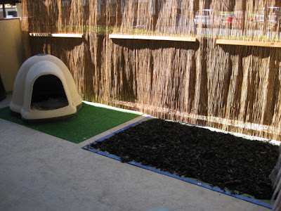 It's been less than 48 hours and Pea's used it at least 3 times. I would say I finally figured out a solution to the problem. Total cost: Under $20. I still have an entire bottle of Concrobium left, more than half of the tarp, and a bag of mulch.